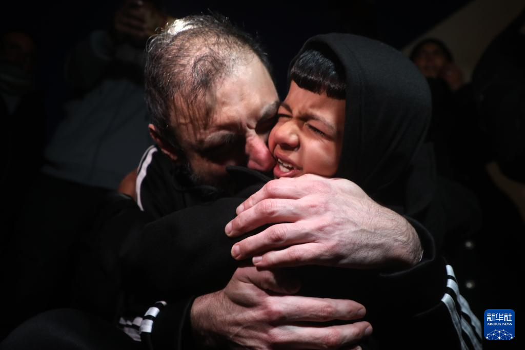 2月27日,巴勒斯坦获释人员回到加沙地带南部汗尤尼斯,与亲人团聚。
