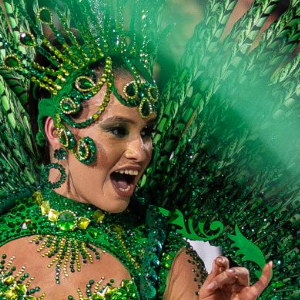 2月28日,在巴西里约热内卢桑巴大道,桑巴舞校的演员参加狂欢节游行。