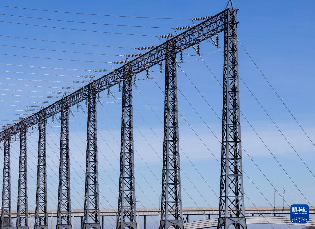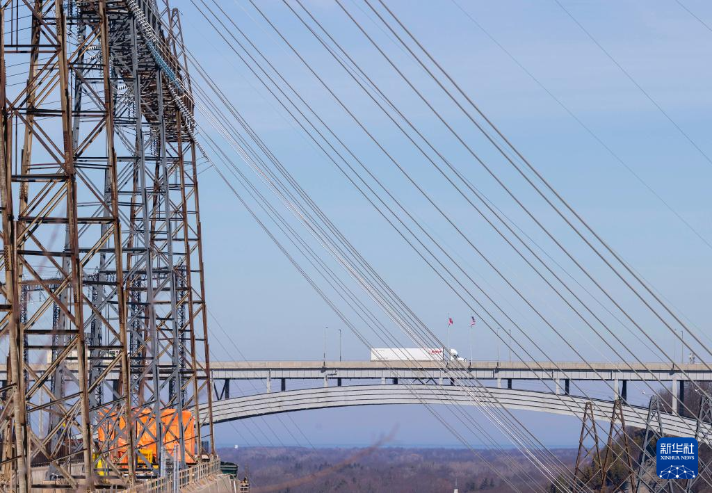 这是3月10日在加拿大安大略省尼亚加拉瀑布市拍摄的位于加美边境地带的亚当·贝克爵士水电站输电线。
