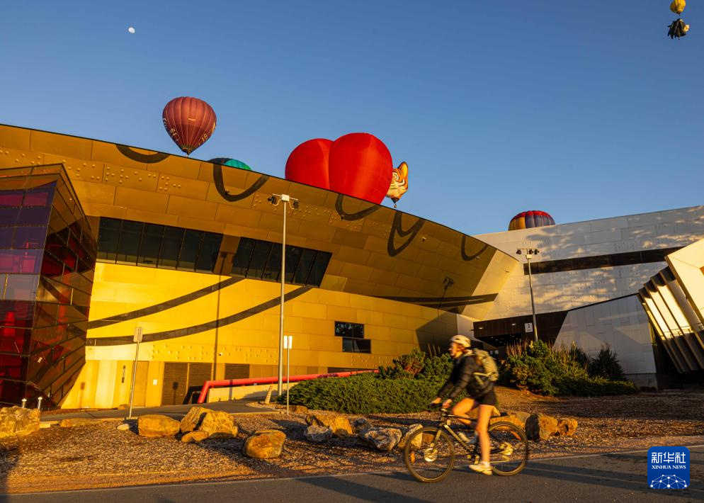 3月18日,在澳大利亚堪培拉,热气球飞过国家博物馆上空。