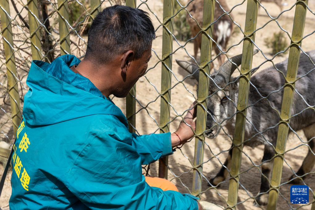 扎西曲培在南山公园照顾自己救助的小岩羊(2025年3月20日摄)。