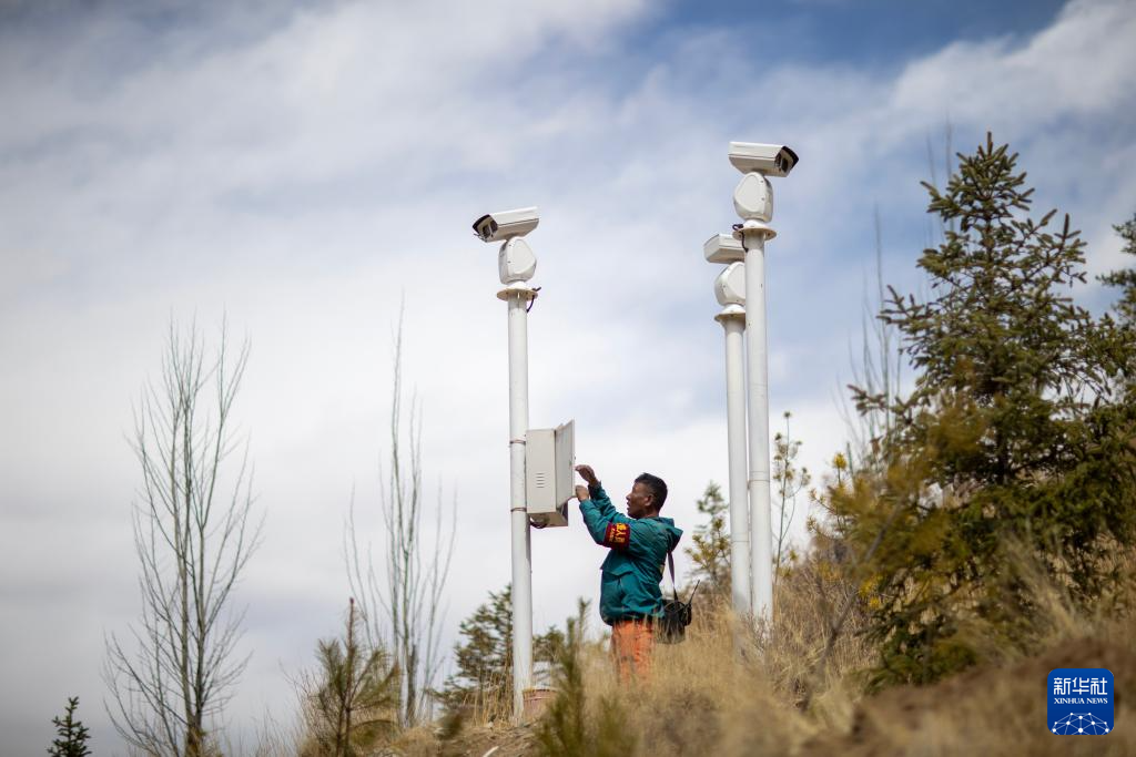 扎西曲培在南山公园检修消防监控装置(2025年3月20日摄)。