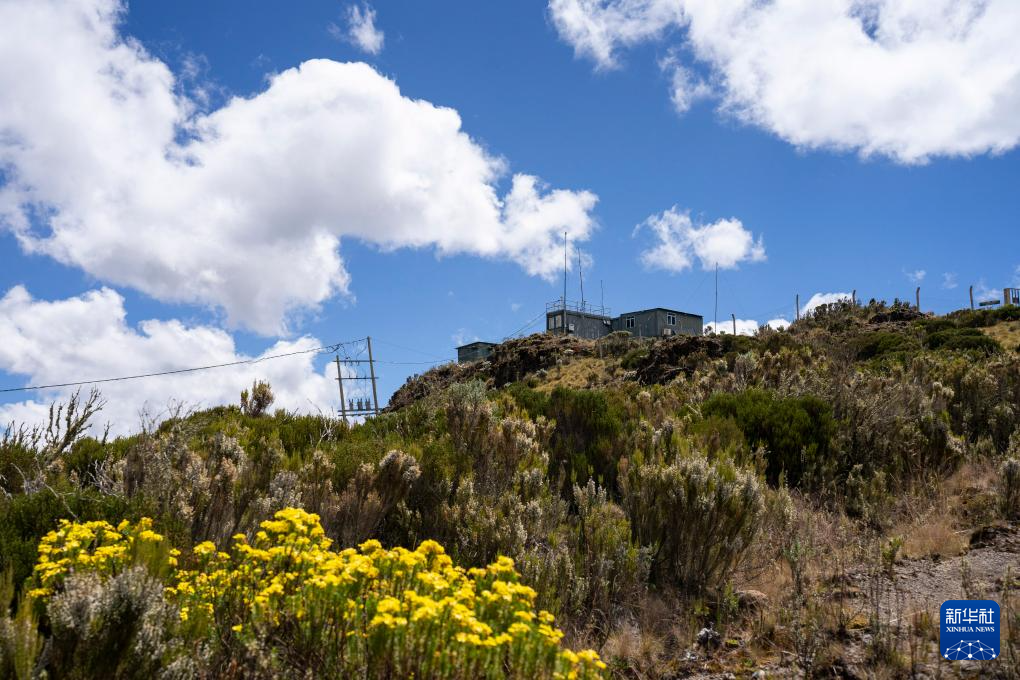 这是2023年2月19日在肯尼亚山国家公园拍摄的气象站。