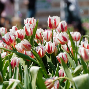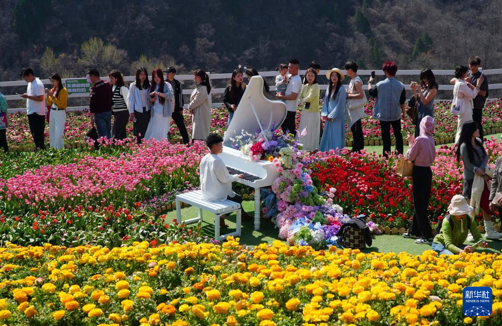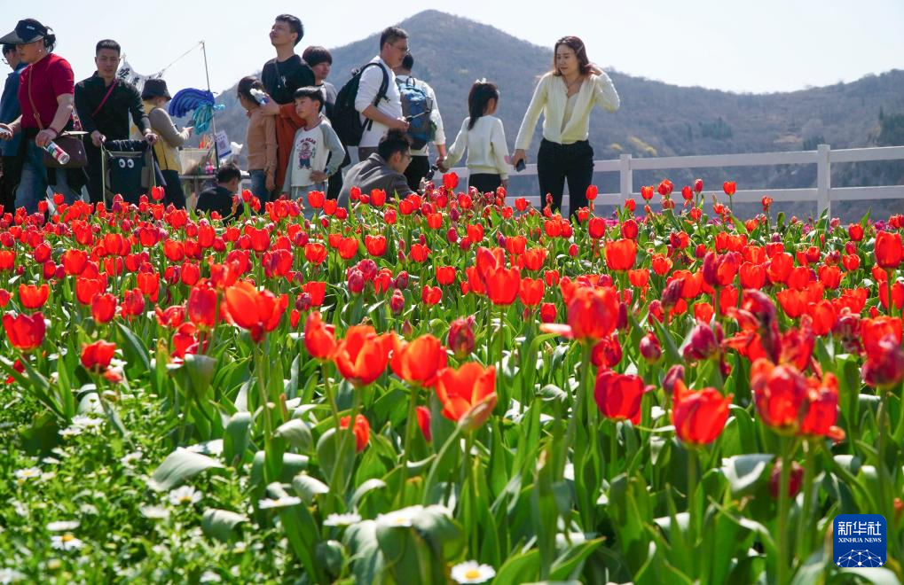 近日,山东省淄博市博山区红叶柿岩景区的郁金香陆续盛开,吸引游客前来赏花踏春。