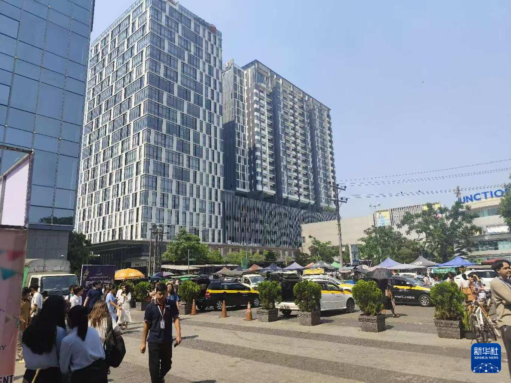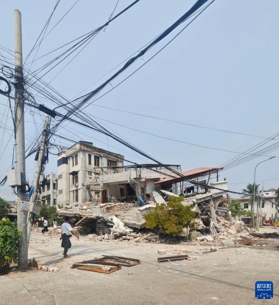 这是3月28日在缅甸内比都拍摄的地震后受损的建筑。