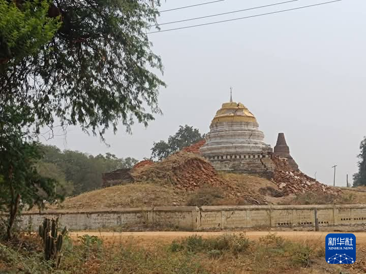 这是3月28日在缅甸曼德勒省拍摄的地震后受损的佛塔。
