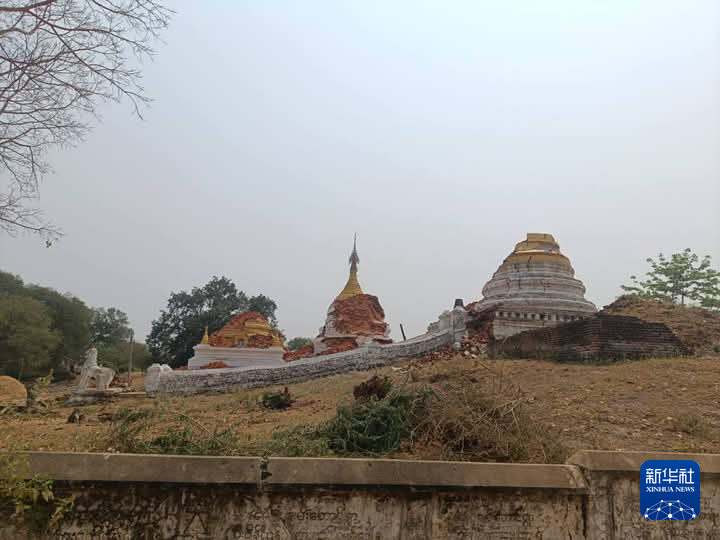这是3月28日在缅甸曼德勒省拍摄的地震后受损的建筑。