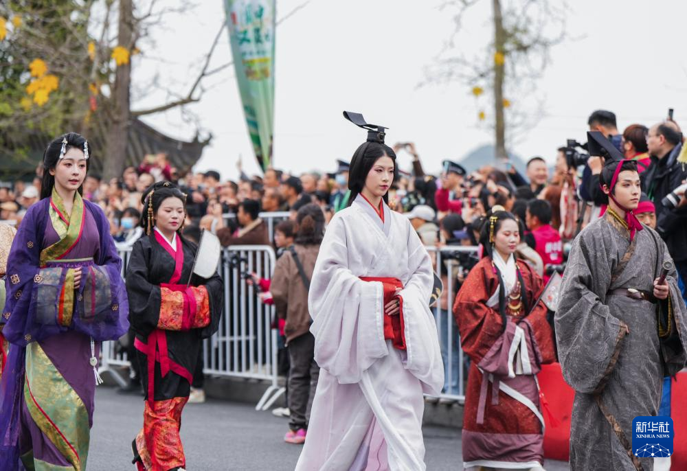 3月29日拍摄的汉服商家方阵巡游队伍。