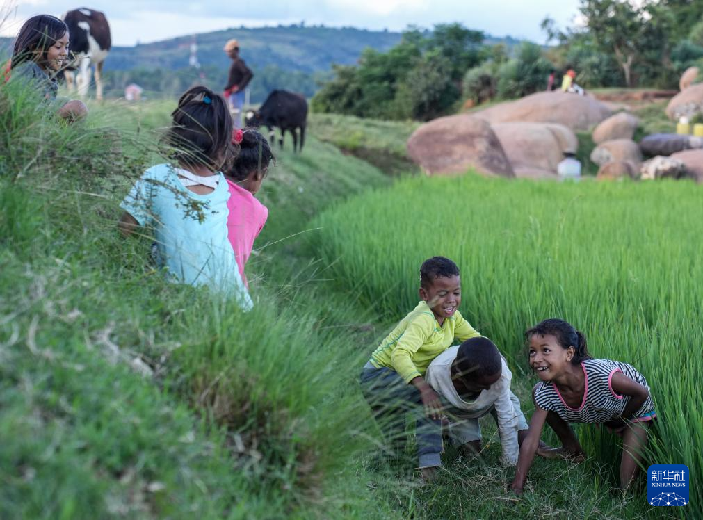 3月25日,在马达加斯加首都塔那那利佛市郊,几名儿童在玩耍。