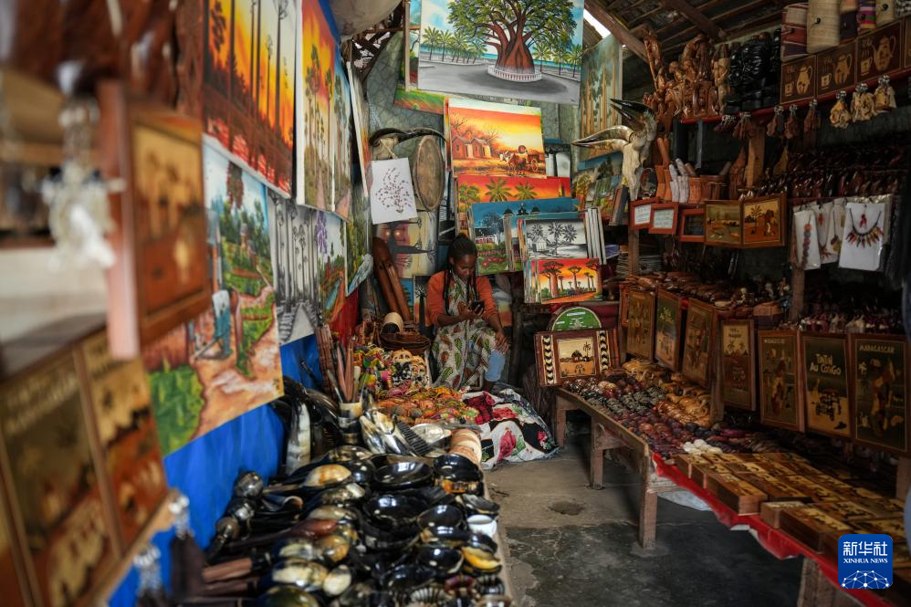 3月30日,在马达加斯加首都塔那那利佛,一名工艺品店主在等待顾客。