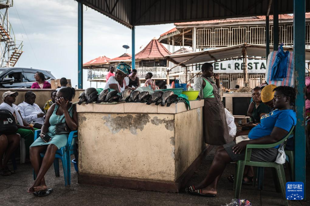 4月3日,在肯尼亚基苏木,商贩在维多利亚湖畔的鱼市内卖鱼。