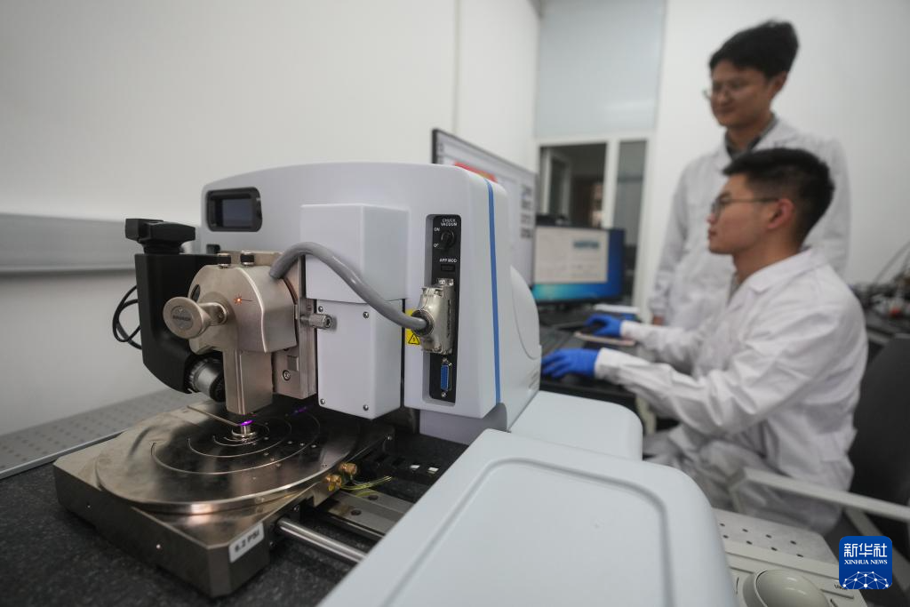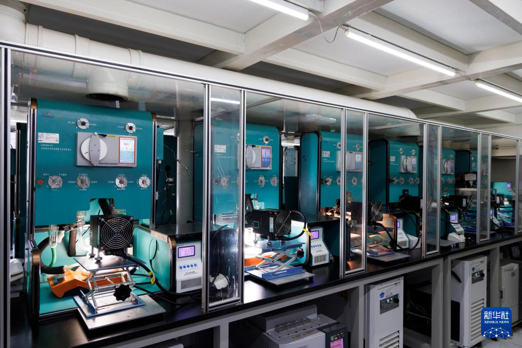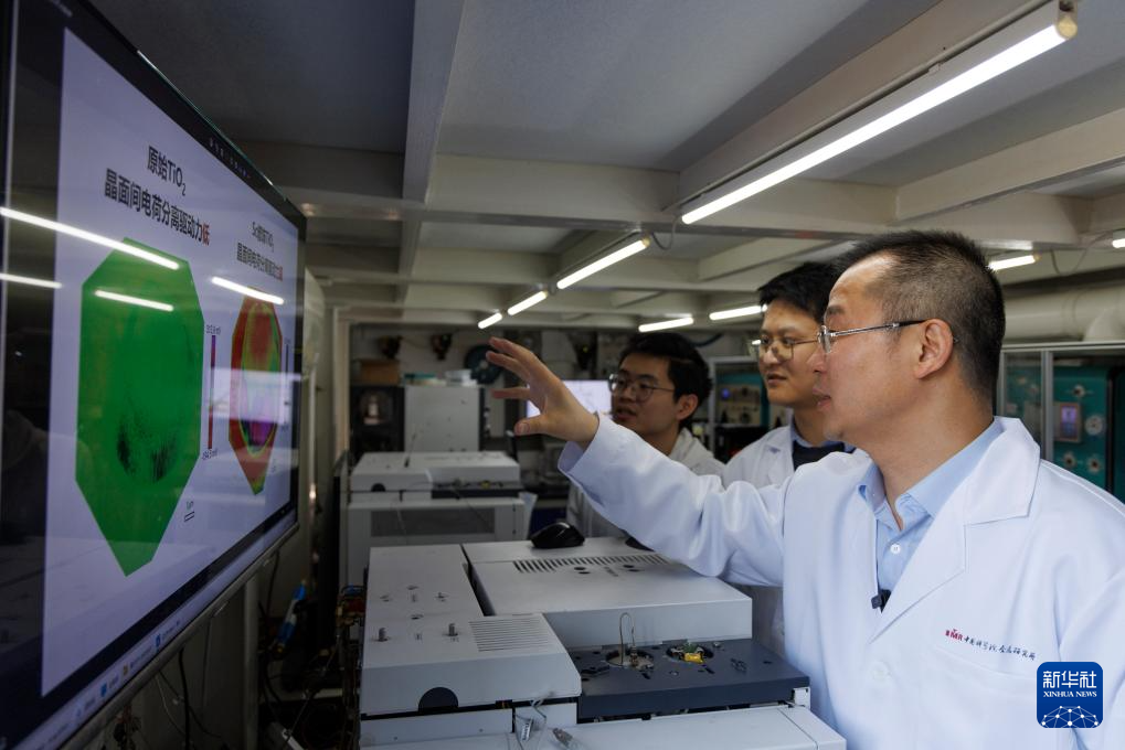 4月7日,在中国科学院金属研究所沈阳材料科学国家研究中心实验室,科研人员在检测改造后的半导体光催化材料二氧化钛样品。