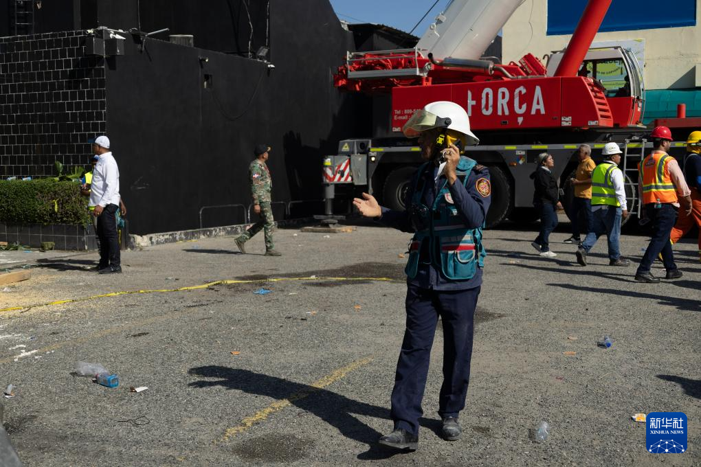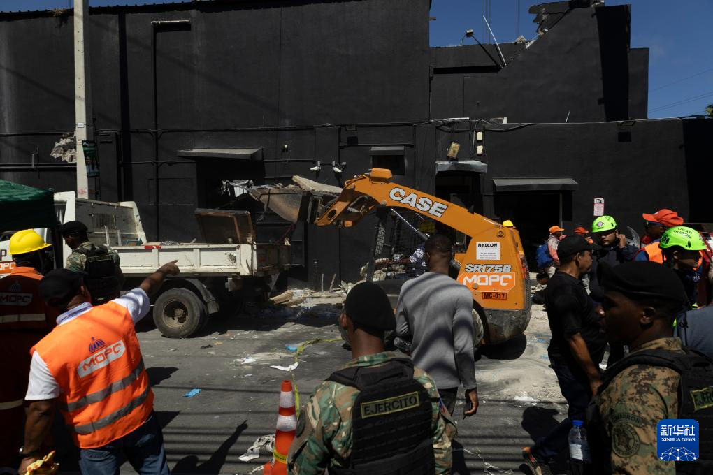 4月8日,救援人员在多米尼加首都圣多明各的夜总会屋顶坍塌事故现场工作。