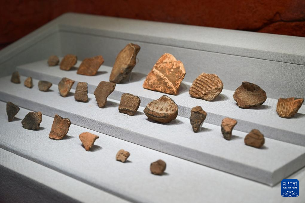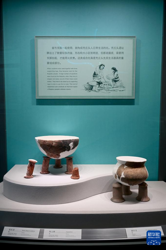这是中国考古博物馆壳丘头分馆的展品陈列(4月8日摄)。