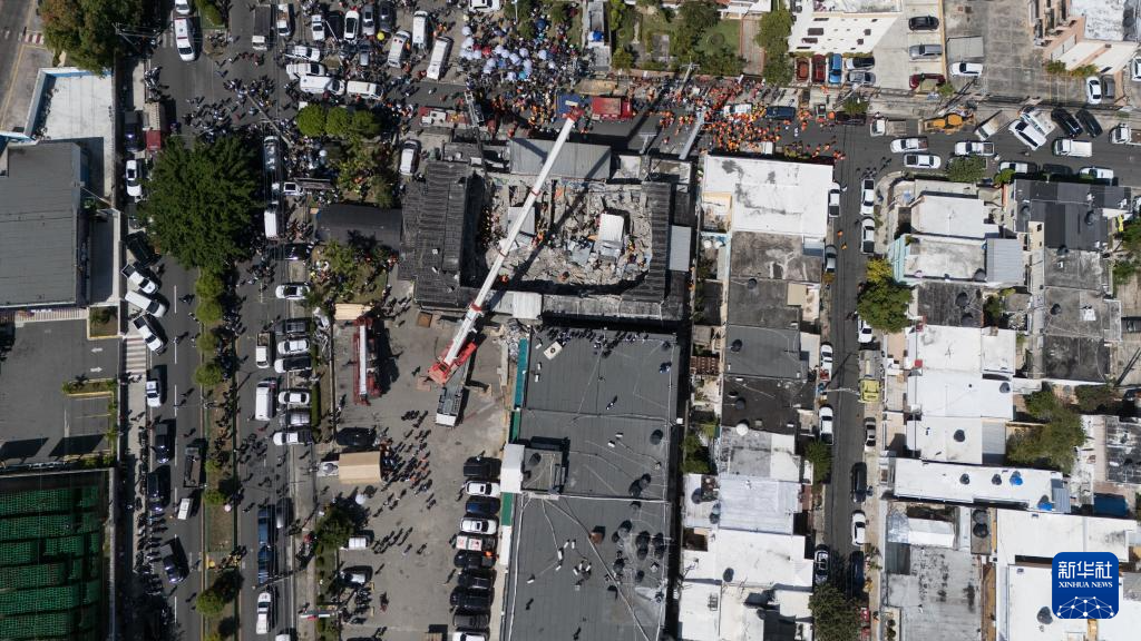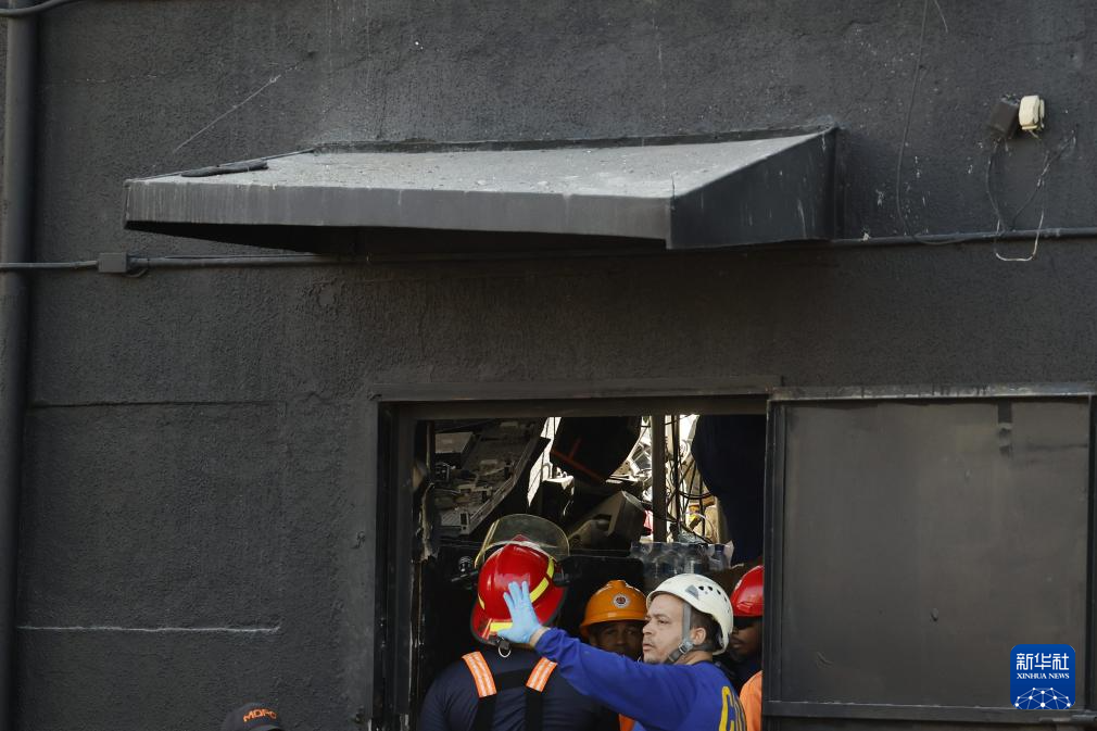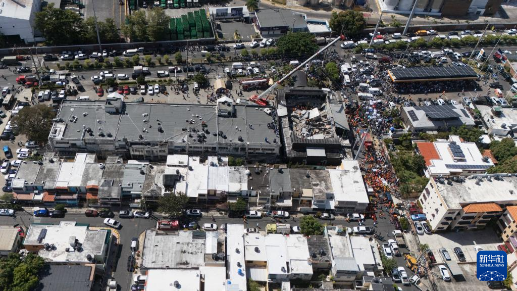 这是4月8日在多米尼加首都圣多明各拍摄的夜总会屋顶坍塌事故现场(无人机照片)。