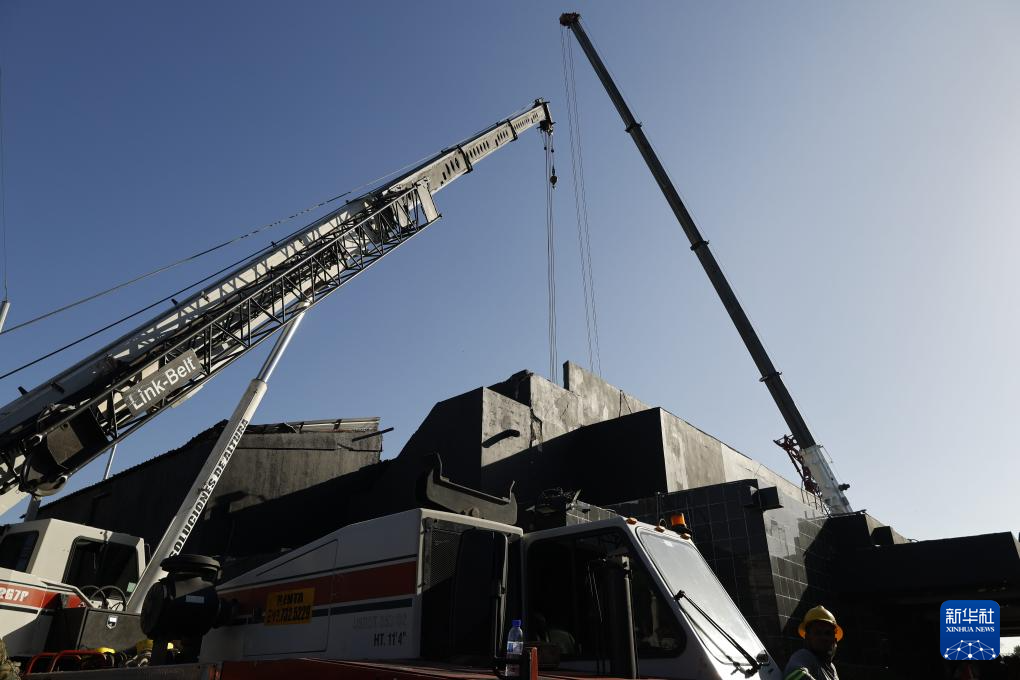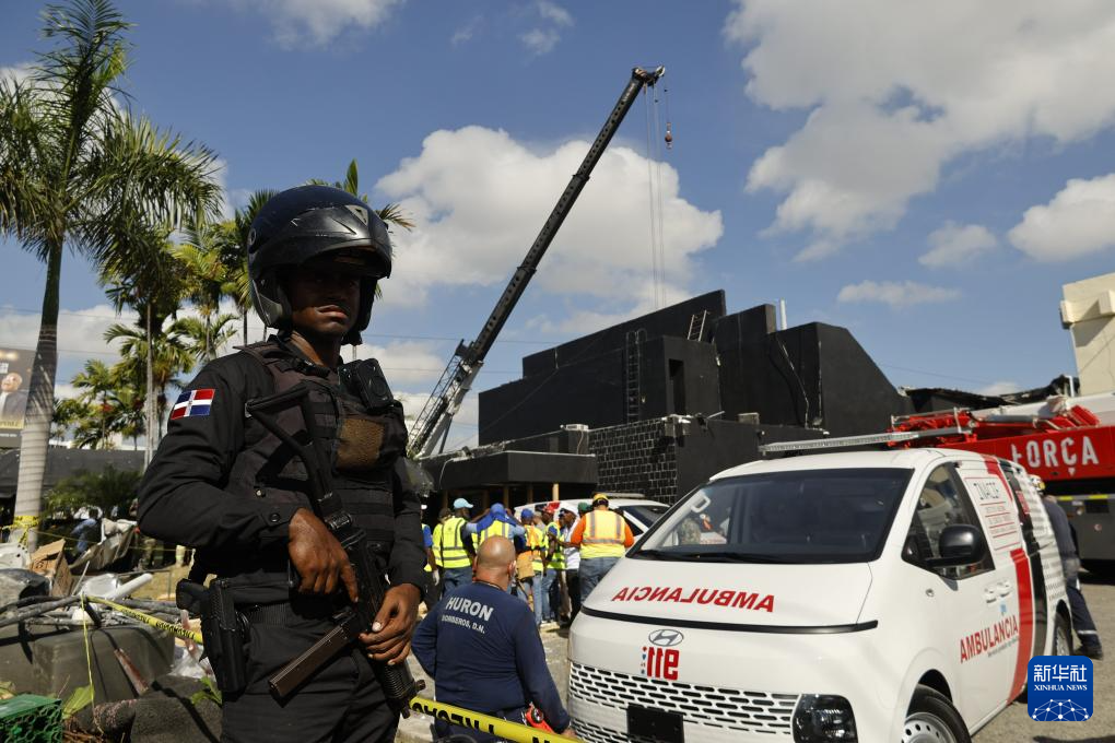 4月8日,救援人员在多米尼加首都圣多明各的夜总会屋顶坍塌事故现场工作。