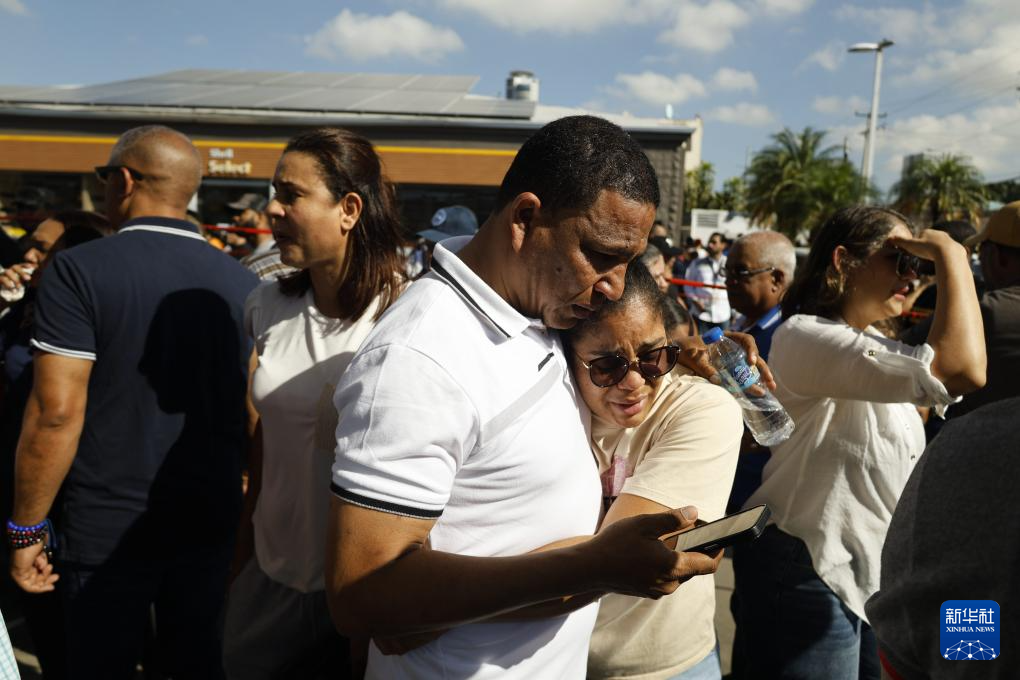 4月8日,人们聚集在多米尼加首都圣多明各的夜总会屋顶坍塌事故现场附近。