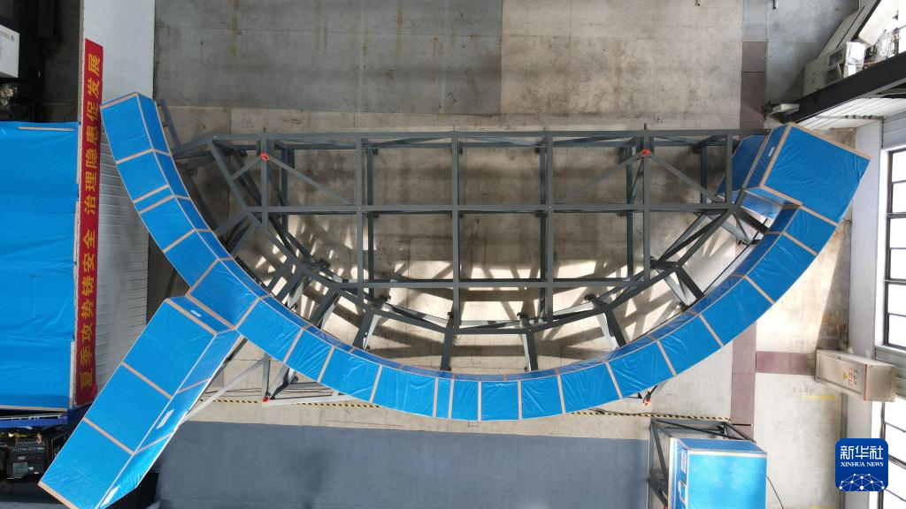 这是竣工待交付的最后一套国际热核聚变实验堆(ITER)超导磁体校正场线圈内馈线部件(无人机照片,4月11日摄)。