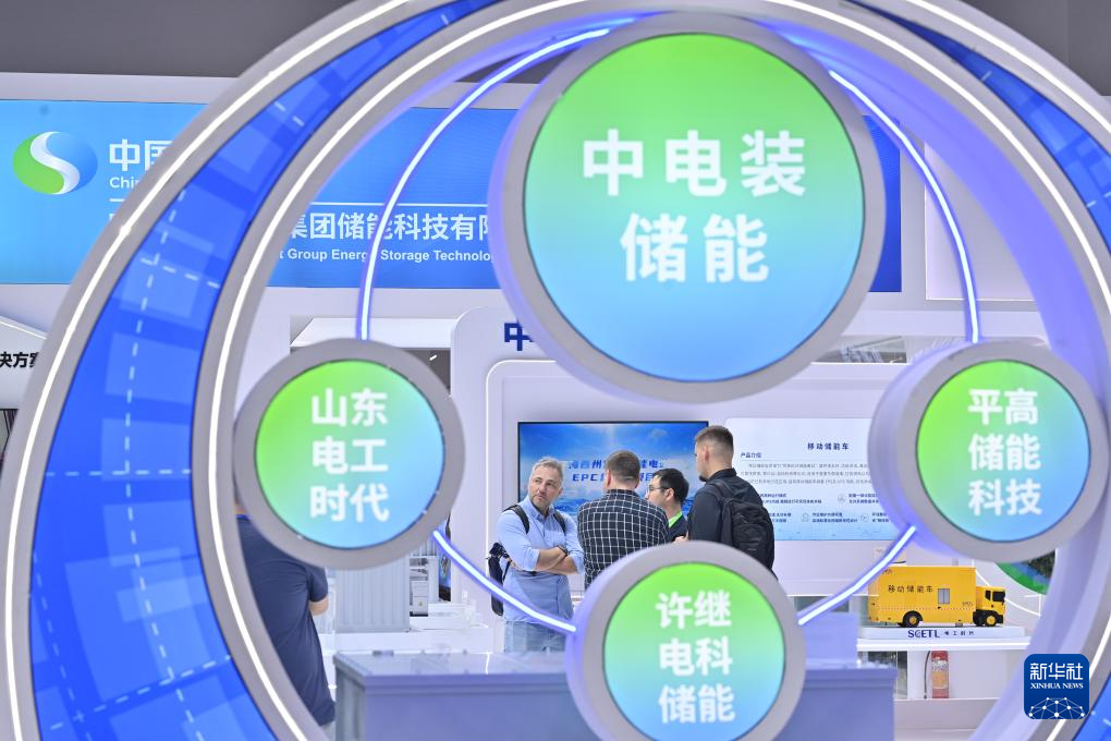 4月11日,参观者在第十三届储能国际峰会暨展览会上了解中国电气装备集团展出的产品。