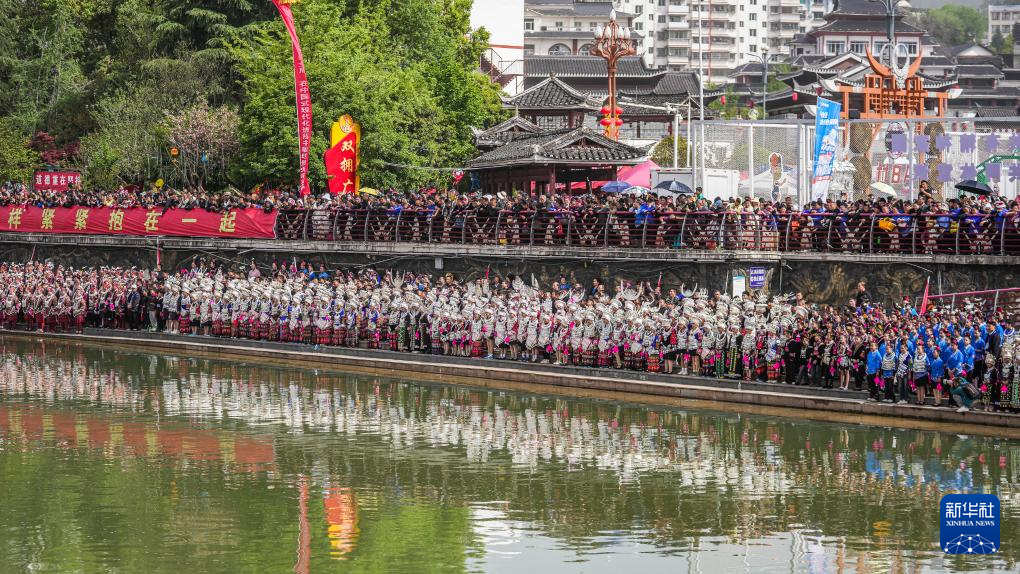 当日,贵州台江2025年苗族姊妹节苗歌对唱活动在台江县翁你河畔举行。来自台江县的万余名苗族群众,身着节日盛装齐聚翁你河畔,以传统对唱的方式,向游客展现苗族飞歌、情歌,欢庆姊妹节。