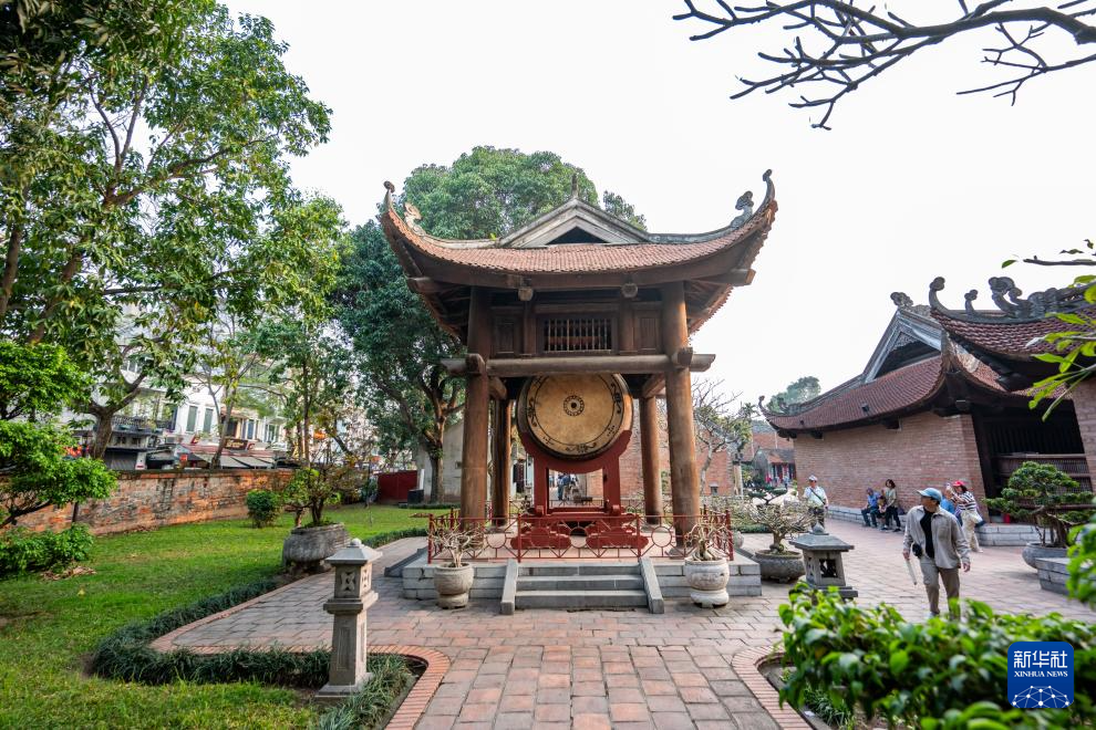 3月24日,游客在越南首都河内的文庙-国子监游览。