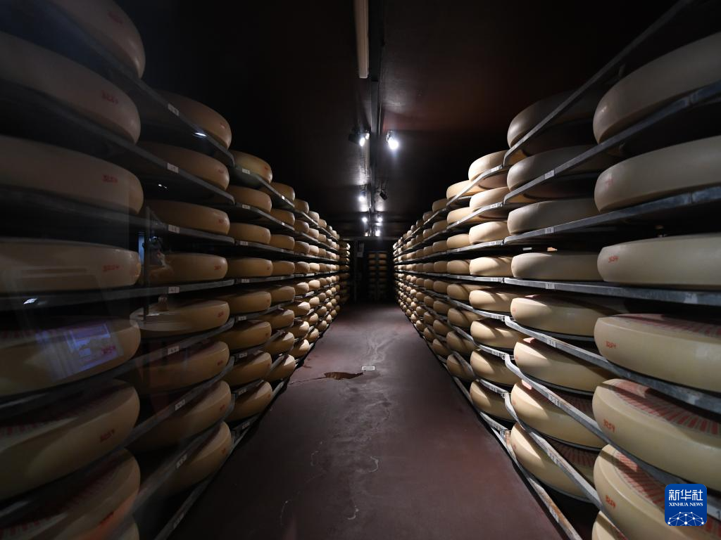这是4月12日在瑞士埃默河谷阿福尔特恩的奶酪厂拍摄的奶酪。