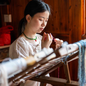 绣庄通过开展非遗进校园、刺绣展演、刺绣体验等活动,让越来越多的人了解桃源刺绣的魅力。肖瑶还不定期举办刺绣培训班,免费向村民传授刺绣技艺,为绣庄周边的妇女、返乡学生提供工作岗位,带动村民在家门口就业。为了给桃源刺绣赢得更广阔的生存空间,肖瑶带领团队开发文创产品,制作耳环、胸针、项链等饰品,把桃源刺绣带入大众视野,用青春焕新家乡非遗。
