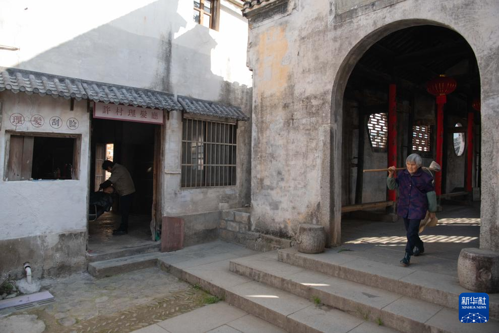 这是安徽省黄山市歙县的高阳廊桥旁的一家理发店(2025年3月25日摄)。