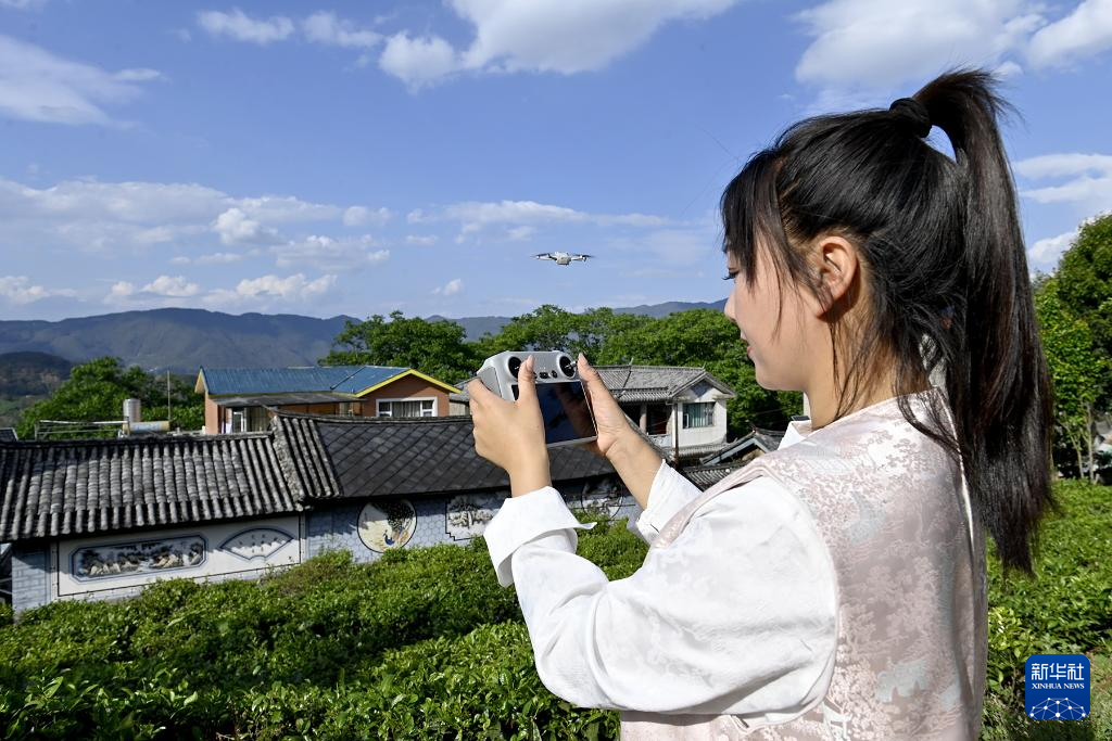 4月17日,鲁丽华用无人机拍摄传统村落,了解民居民俗文化。