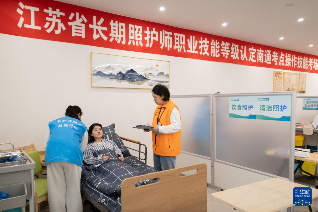 当日,全国首场长期照护师(五级)认定考试在江苏南通举行,首批100名考生参加考试。长期照护师是指运用基本生活照料及护理知识、技能,在家庭、社区、养老机构、医疗机构等场所,为享受长期护理保险待遇人员等人群提供基本生活照料及与之密切相关的医疗护理、功能维护、心理照护等服务的从业人员。