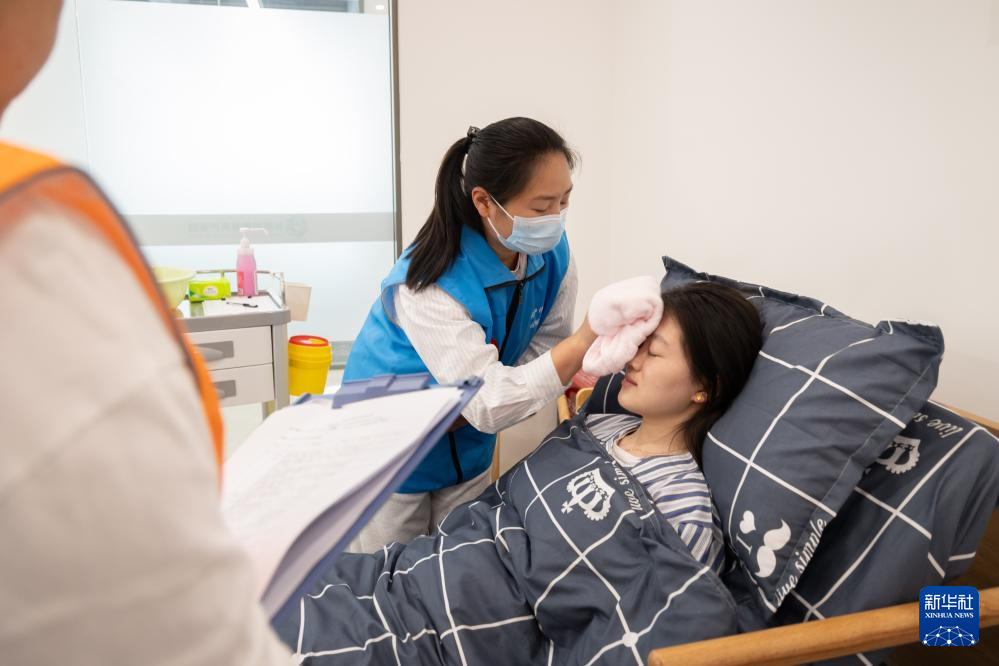 4月19日,在江苏省长期照护师职业技能等级认定南通考点操作技能考场,考生在进行操作技能考试。