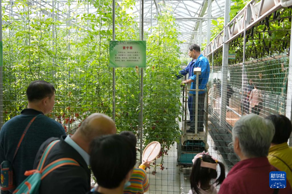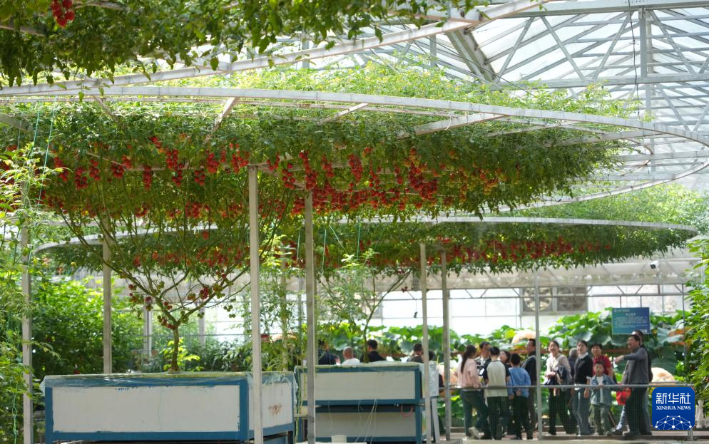 4月20日,在第二十六届中国(寿光)国际蔬菜科技博览会上,人们在观看“西红柿树”。