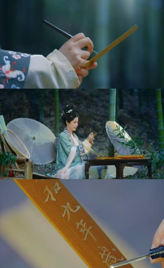 在此次跨界合作中,方淼鑫与曾黎以竹刻为媒展开对话,向公众展示了非遗技艺的匠心与活力。镜头前,方淼鑫现场演示竹刻“减法艺术”,薄如蝉翼的竹片在他刀下化作流水纹路;曾黎则通过体验雕刻竹叶纹样,感慨“每一刀背后都是匠人千百次的锤炼,非遗的珍贵不仅在于技艺本身,更在于那份坚守的匠心。”
