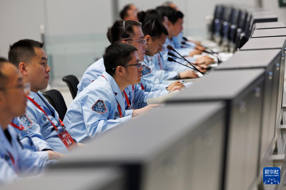 4月24日在北京航天飞行控制中心拍摄的神舟二十号载人飞船成功对接空间站天和核心舱画面。