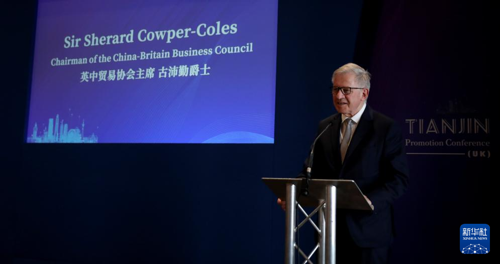 4月24日,英中贸易协会主席古沛勤在英国伦敦举行的天津投资环境推介会上致辞。