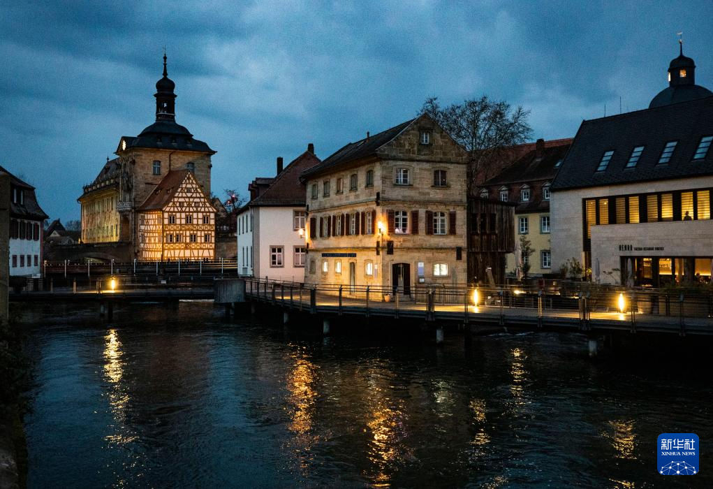 这是3月25日在德国班贝格古城拍摄的街头景象。