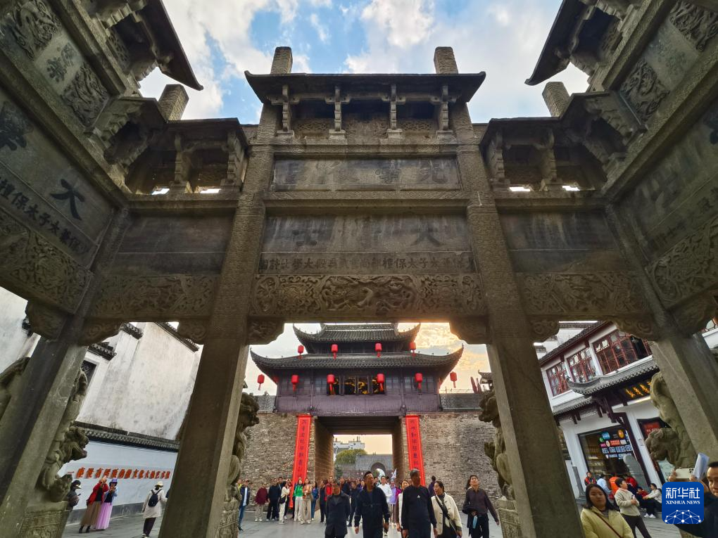 这是3月18日拍摄的安徽歙县徽州古城阳和门。