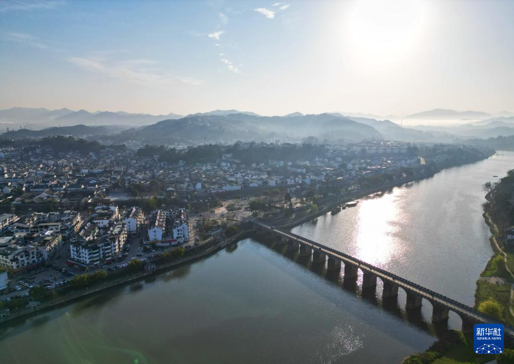 这是3月19日航拍的安徽歙县徽州古城内的许国石坊。