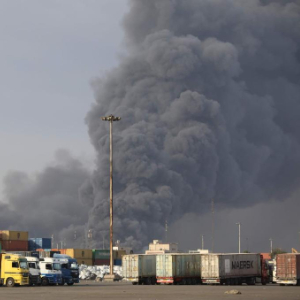 4月26日,伊朗沙希德拉贾伊港的爆炸现场冒出浓烟。