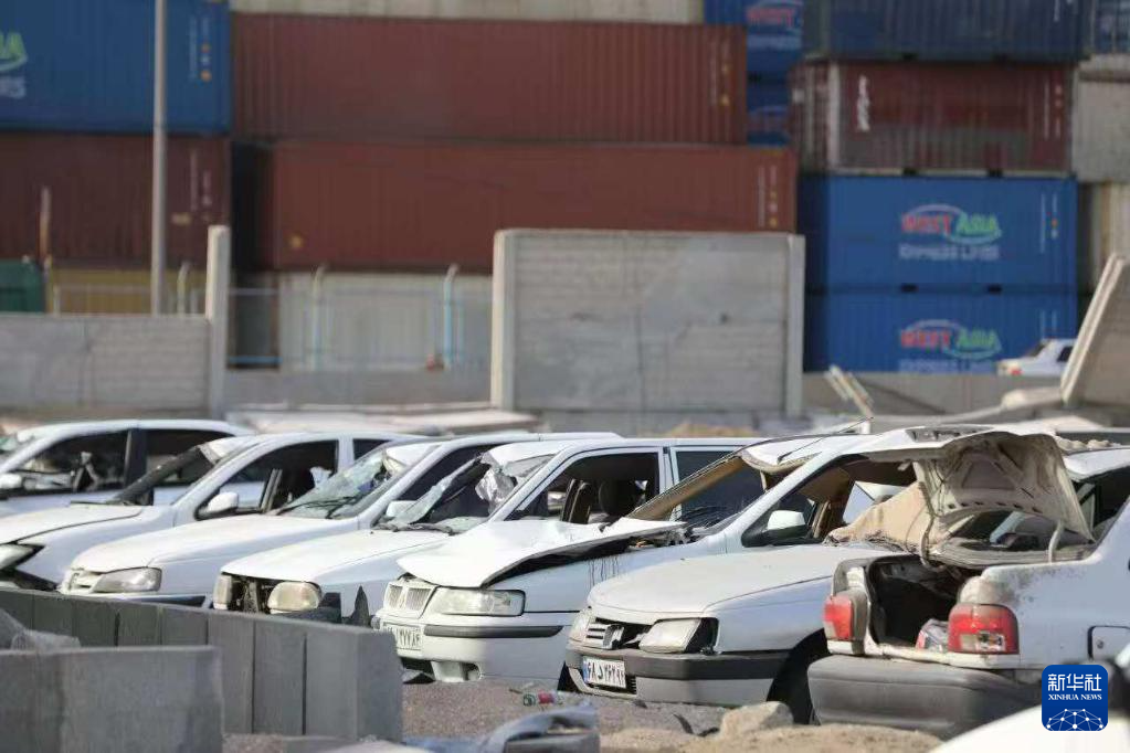 这是4月26日在伊朗沙希德拉贾伊港的爆炸现场拍摄的被毁车辆。