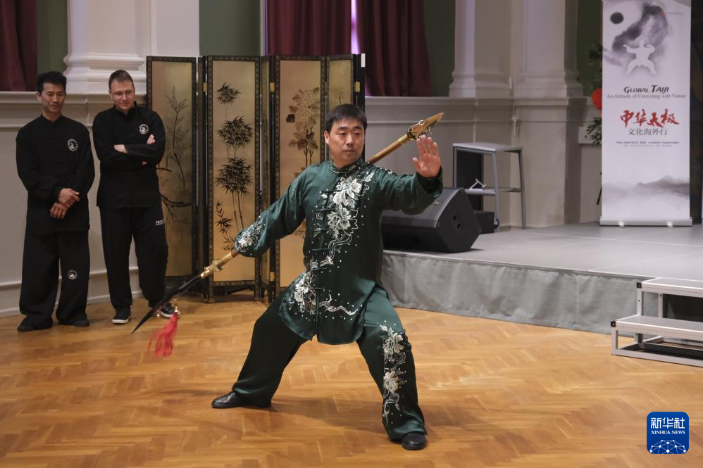 4月25日,太极拳爱好者在丹麦首都哥本哈根表演太极拳。