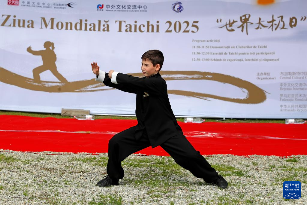 4月26日,太极爱好者在罗马尼亚布加勒斯特参加“世界太极日”活动。