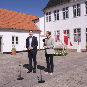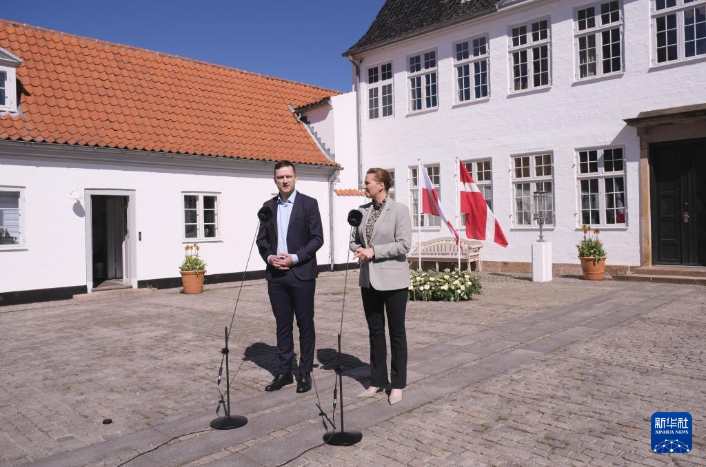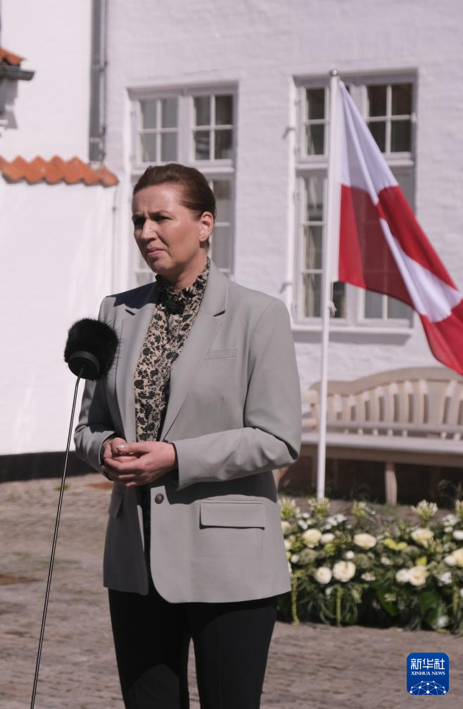 4月27日,在丹麦哥本哈根附近的马林堡,丹麦首相弗雷泽里克森回答记者提问。