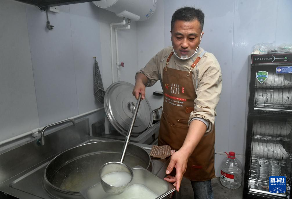 4月21日,吴玉良在河北沧州渤海新区黄骅市“渤海暖心港湾”为环卫工人准备早餐。