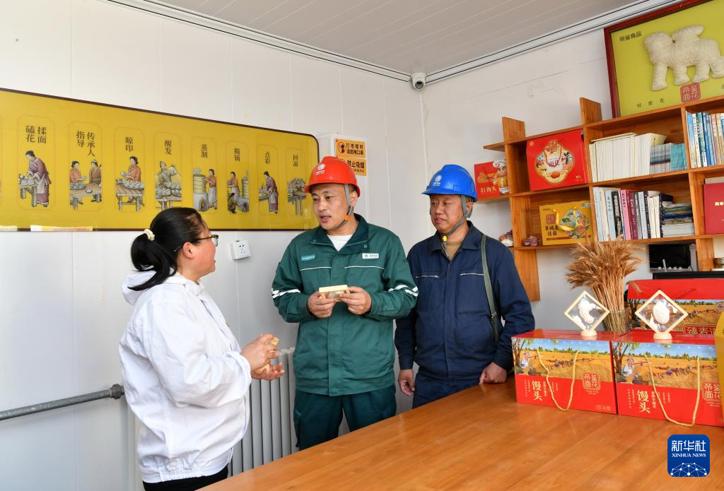 4月21日,在河北沧州渤海新区黄骅市“渤海暖心港湾”屋内吃早餐的环卫工人对吴玉良(左三)做的早餐连连称赞。