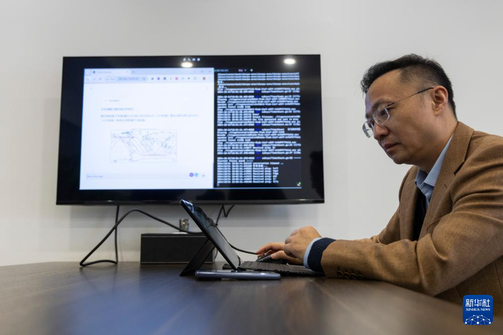 2024年10月24日,曾伟刚在位于西安的办公室测试第二天即将发布的航天私域大模型“华山”。