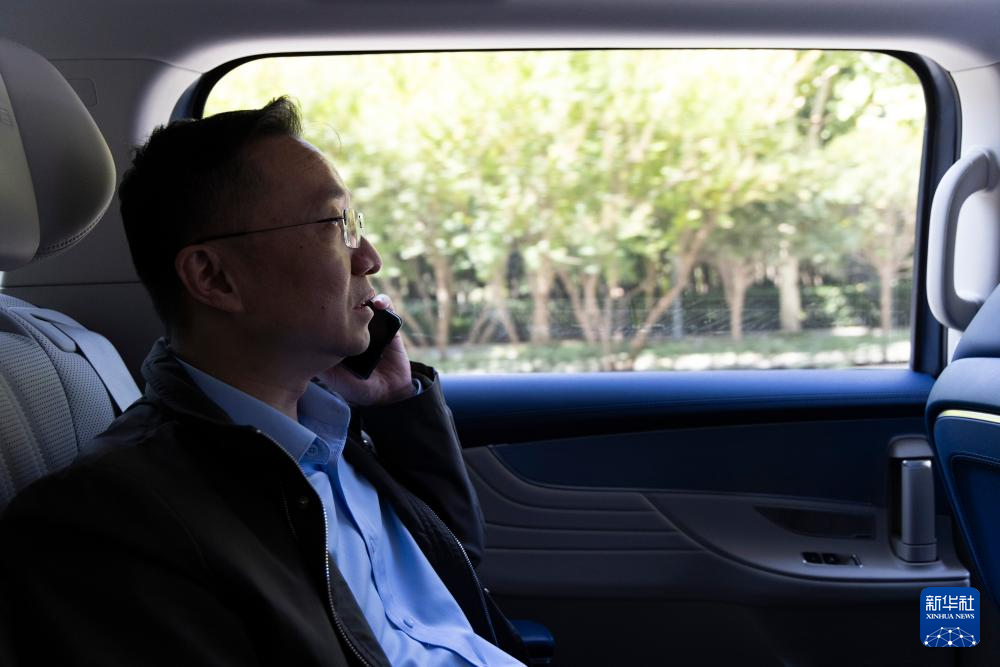 2024年10月23日,曾伟刚在西安乘车拜访客户途中打电话联系工作。