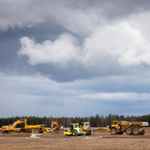 这是4月29日在芬兰东南部城市科特卡拍摄的中芬合资、芬兰首家锂电池材料工厂施工现场。