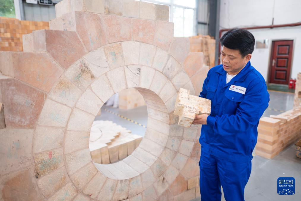 4月25日,吴春桥展示异形耐火砖。