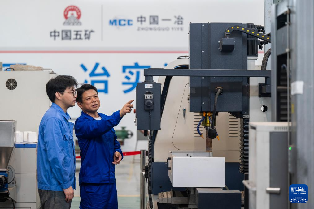 4月25日,吴春桥(右)与工作室成员操作耐火材料实验设备。